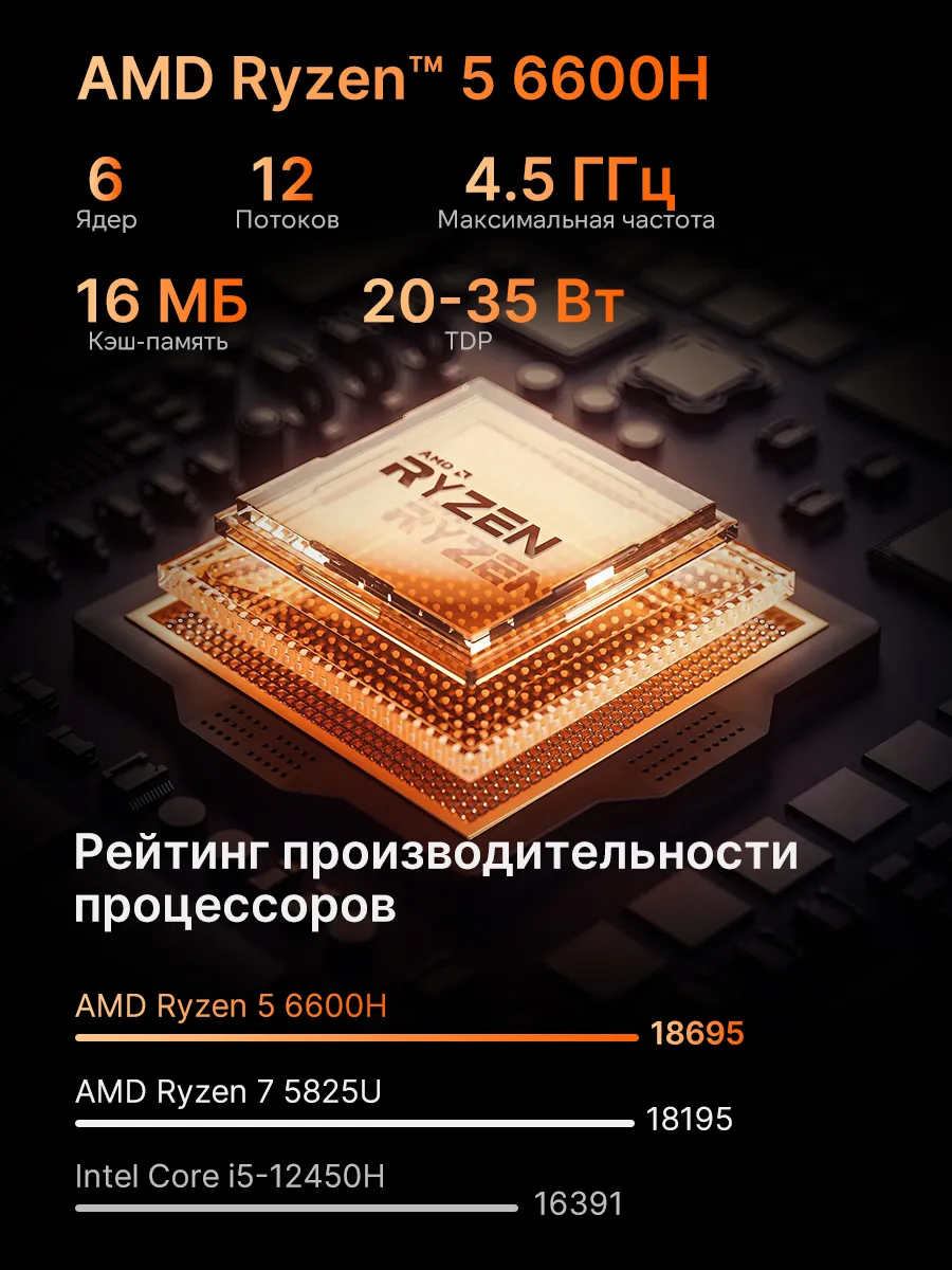 Процессор: AMD Ryzen 5 6600Н 4,5GНz 6/12